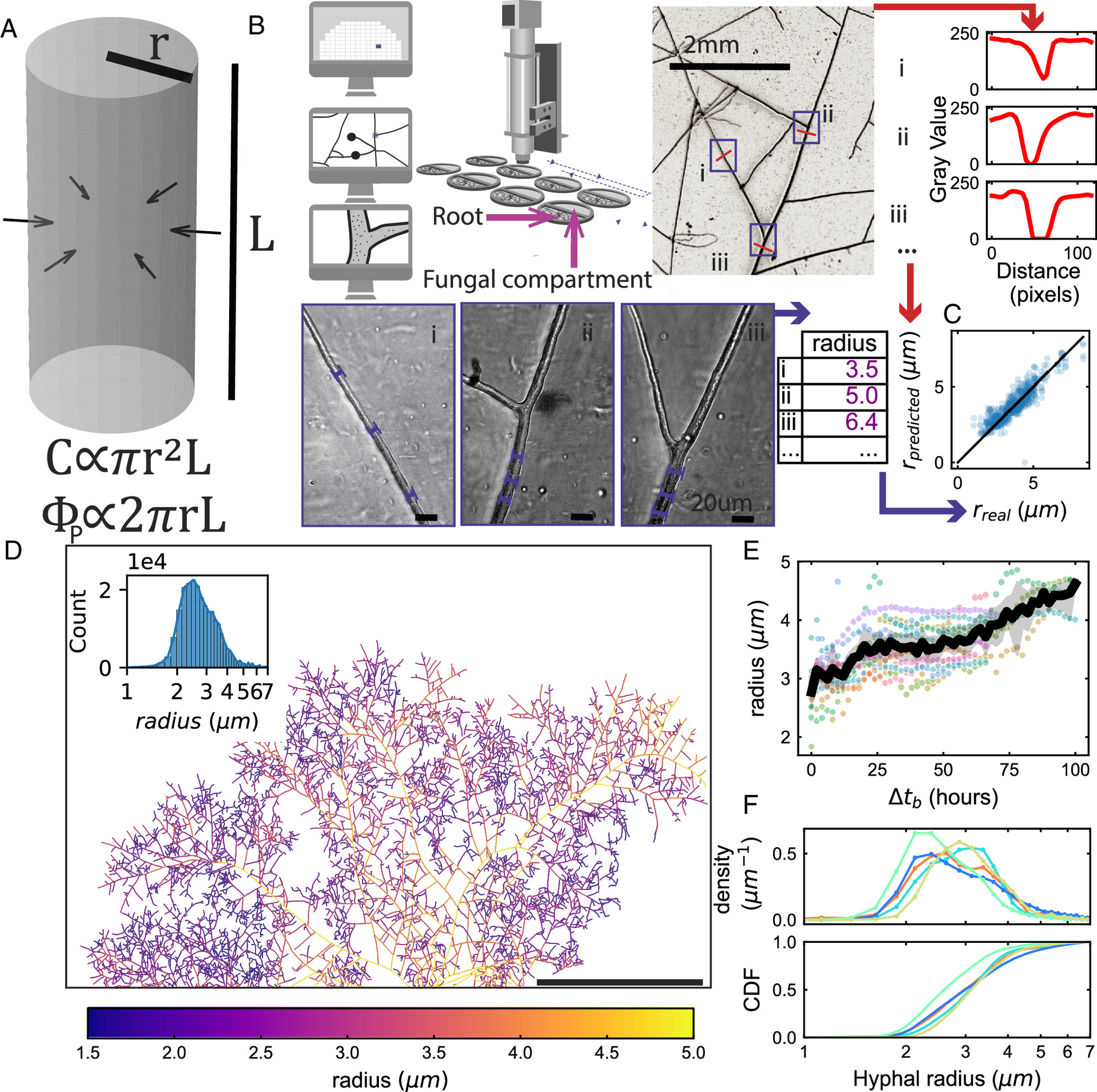 The authors combine robotic imaging, machine learning, and mathematical modeling to dynamically estimate carbon and phosphorus fluxes during fungal network growth. Their central finding is that a nearly constant C/P exchange rate constrains fungal growth phenotypes, creating a trade-off between exploration (fast spread) and exploitation (dense growth).